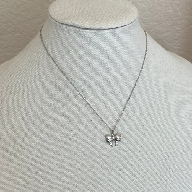 handmade with stainless steel endings (lobster clasp and jump ring), stainless steel chain, and a stainless steel bow charm, perfect with those with sensitive skin