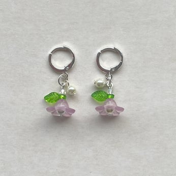 'purple bellflowers with pearl accent' earrings